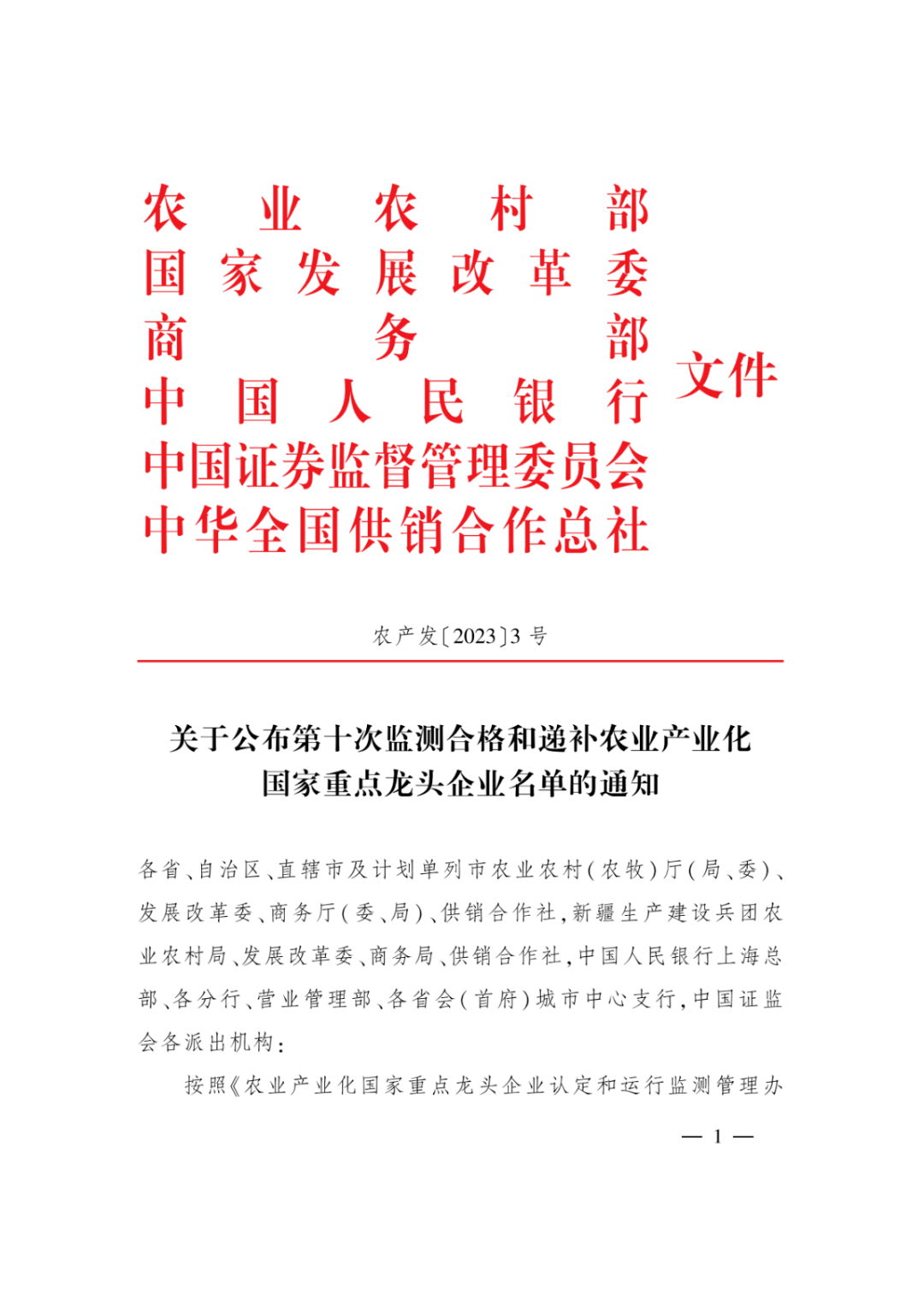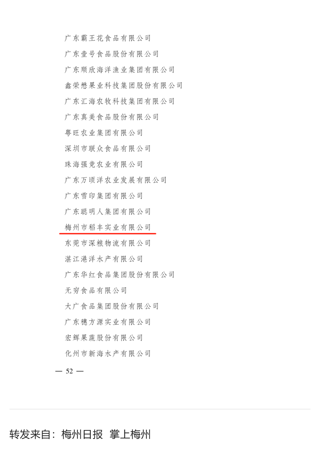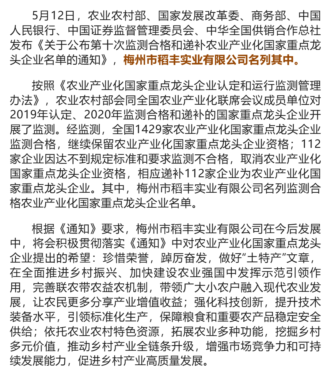 梅州市稻豐實(shí)業(yè)有限公司榮獲第十次監(jiān)測(cè)合格農(nóng)業(yè)產(chǎn)業(yè)化國(guó)家重點(diǎn)龍頭企業(yè)